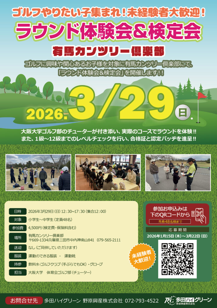 「ラウンド体験会&検定会」を2026年3月29日(日)に開催します。
